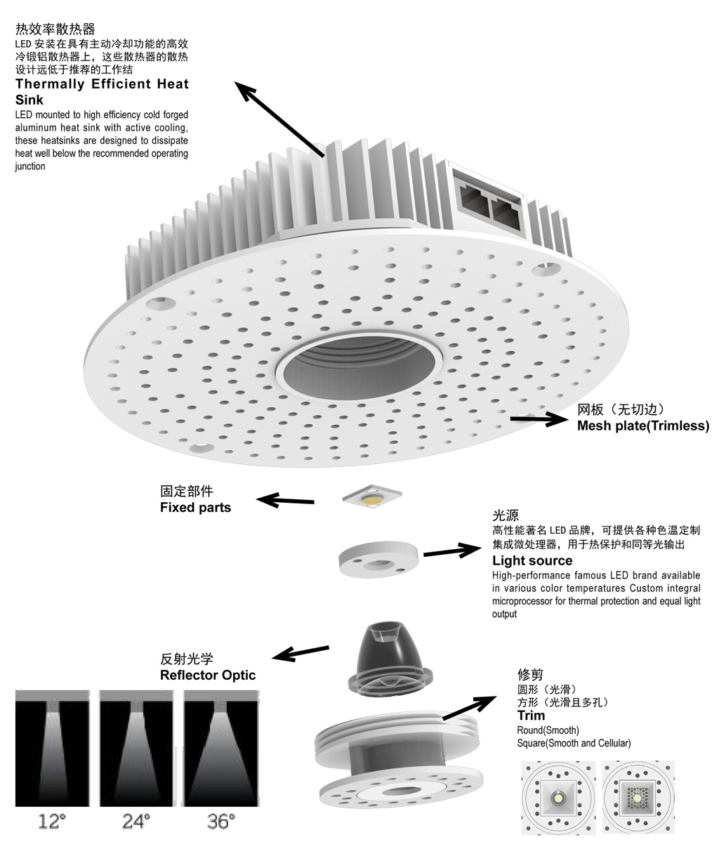 X-light Ⅱ系列-若能在黑暗的天空中绽放光芒,便能化作星空!X-light Ⅱ超薄,整个灯的高度只有 12 毫米;超小型发光表面,仅 0.47 英寸 ( ∅ 12 毫米);具有方形和圆形发光效果的 X 光系列;采用大品牌COB光源,发光效率高(140lm/w),使用寿命长(100000 小时);专业配光装置,无眩光,完美控光,光斑均匀过渡。